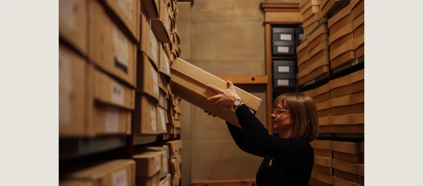 Image above: The charity's collections team undertake the preventative conservation of maps in the archives
