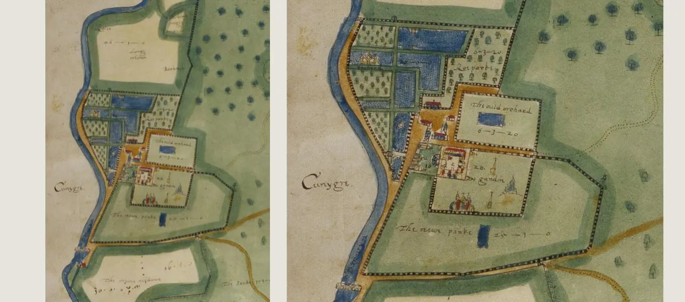 Two particularly interesting maps were selected: a 1617 map of Chatsworth Park by surveyor William Senior, the earliest map of Chatsworth in the collection, and a 1785 map of Edensor.