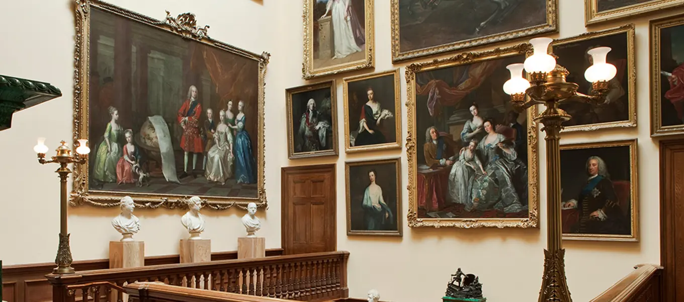 Underneath the second floor gallery is the group portrait of the Acheson sisters by John Singer Sargent (1856-1925). These sisters were the granddaughters by her first marriage of Duchess Louise. The artist had wanted to paint the sisters using some of the poses they adopted when playing golf, but instead this more conventional representation of Edwardian elegance was chosen.