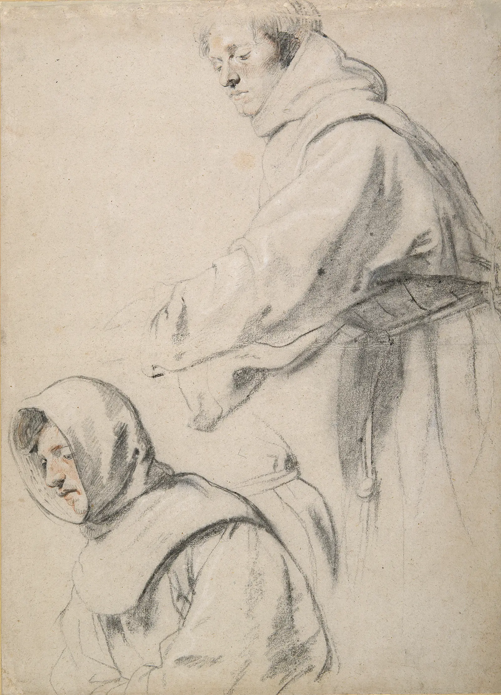 Two Franciscan Friars is a study for an altarpiece showing the last communion of St Francis of Assisi, painted by Rubens for a church in Antwerp. The figures in the study are recognisable in the final painting although their spatial relationship to one another has changed.