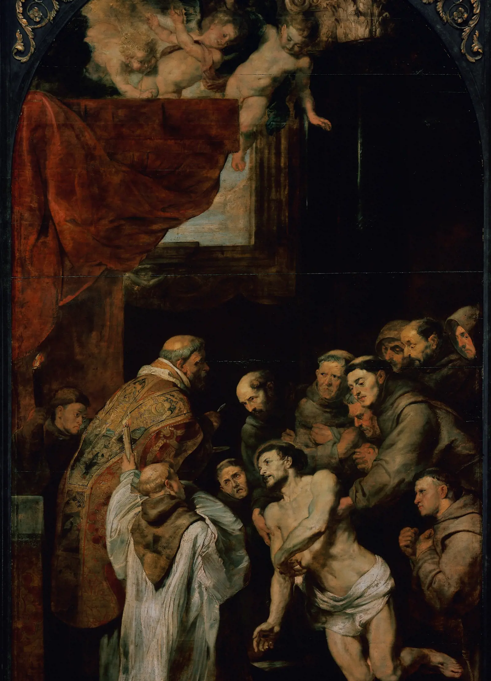 Having spent most of the first decade of the century travelling in Europe, much of the second decade was spent executing public and private commissions in Antwerp. This drawing connects to one of those commissions, from a rich merchant who then donated his altarpiece to a church dedicated to an order of Franciscan Friars in the city.