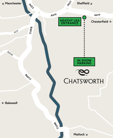 In Show parking tickets do not include access to the country fair – you must book either General Admission or Ringside Pavillion tickets for each member of your party. In Show parking spaces are suitable for ‘standard’ sized vehicles, up to and including a large SUV or 4x4. They are not suitable for minibuses. If you book In Show parking you must use the Heathy Lea entry as shown in the map below.