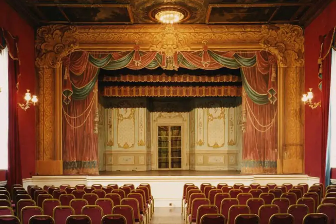 Chatsworth's Theatre was designed in 1832 by Sir Jeffry Wyatville for the 6th Duke of Devonshire. It was originally a ballroom, and the two theatre boxes on either side of the entrance, along with the gallery above, are original to the space, and were used by Queen Victoria when she attended a ball there in 1843.
