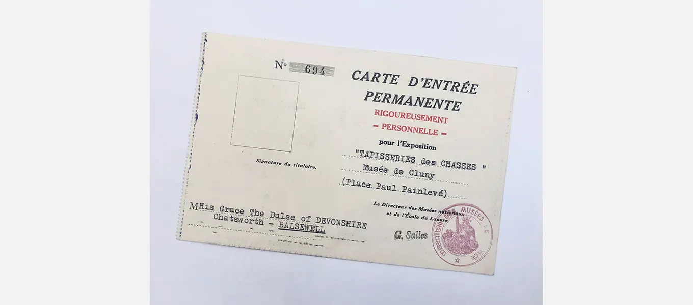 Admission ticket for the exhibition of the Deer Hunt at the Musée de Cluny, Paris (1950). Credit: Devonshire Collection Archives.