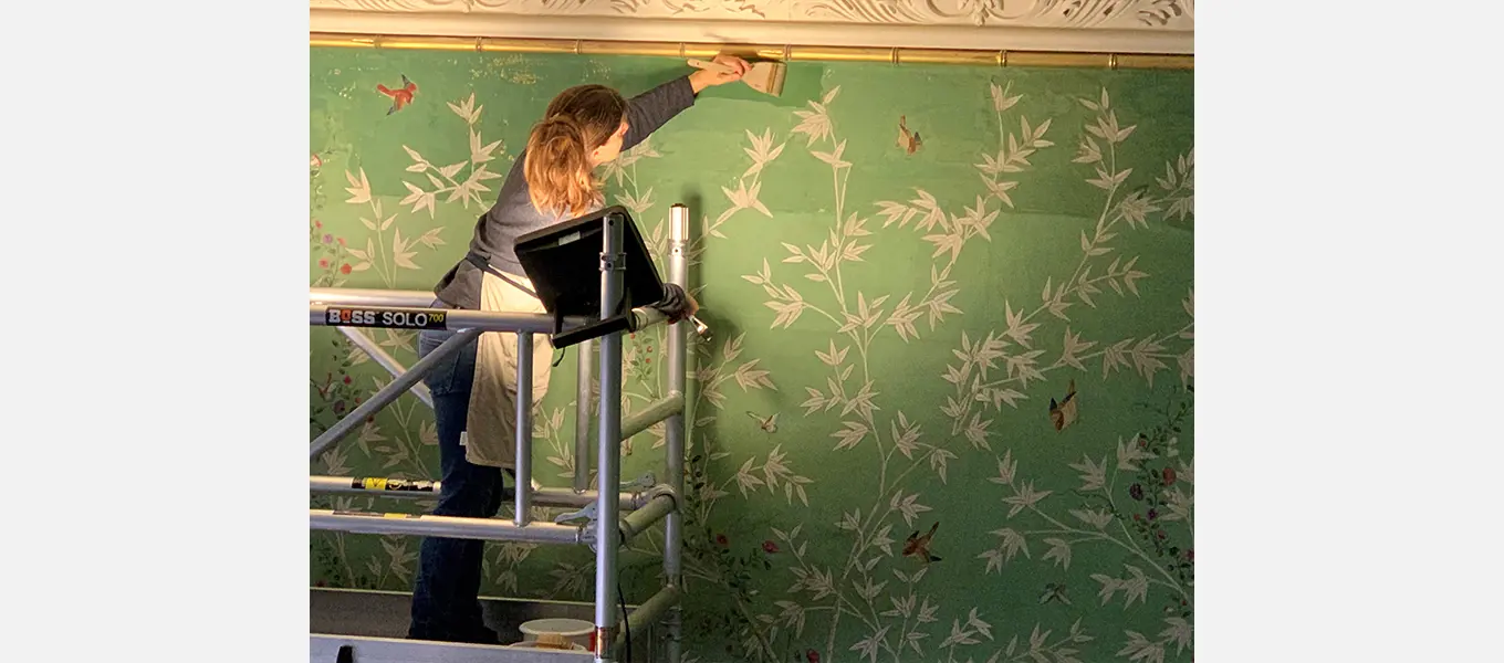 Specialist wallpaper conservators were employed to help the collections team take a closer look at the damage that had appeared through the years.