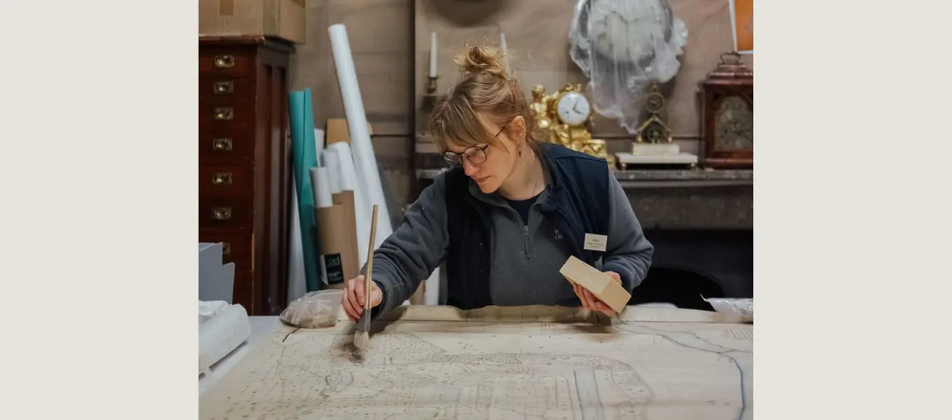 Image above: The charity's collections team undertake the preventative conservation of maps in the archives