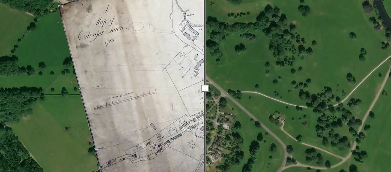 Before digitisation, when looking at the 1785 map it was hard to visualise where the original buildings would sit in today’s landscape. Using GIS helps to transform our understanding of this document, and how the village of Edensor was changed by the 6th Duke and Paxton.