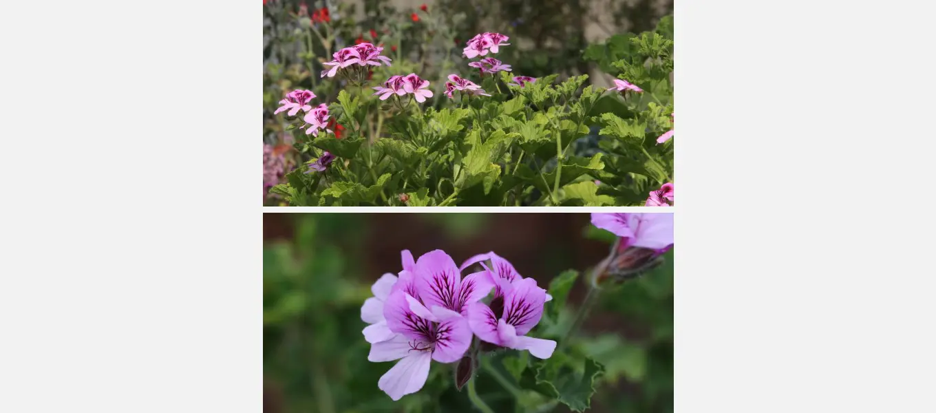 All of the varieties we grow are descended from species that are mainly found in South Africa and a few of its surrounding islands. They use the strong scent to defend themselves from grazing animals and to attract pollinating insects. Varieties descended from Pelargonium cordifolium give off a scent of apple; those from P. crispum smell citrusy; while other species have scents of cinnamon, coconut, hazelnut, ginger, camphor, balsam, peach, pineapple, myrrh and rose. In the 18th century, breeders began crossing these plants, selecting the most interesting and clearest scents that arose for mass production creating a trend for these plants to be used alongside other tender decorative specimens such as citrus and myrtles. Scented leaved pelargoniums are certainly making a revival. All can be used to flavour food; the edible flowers are a great decorative garnish for many desserts and puddings. When ripe, the foliage is also a long lasting, beautiful addition to any flower arrangement – they are certainly plants to consider growing at home.