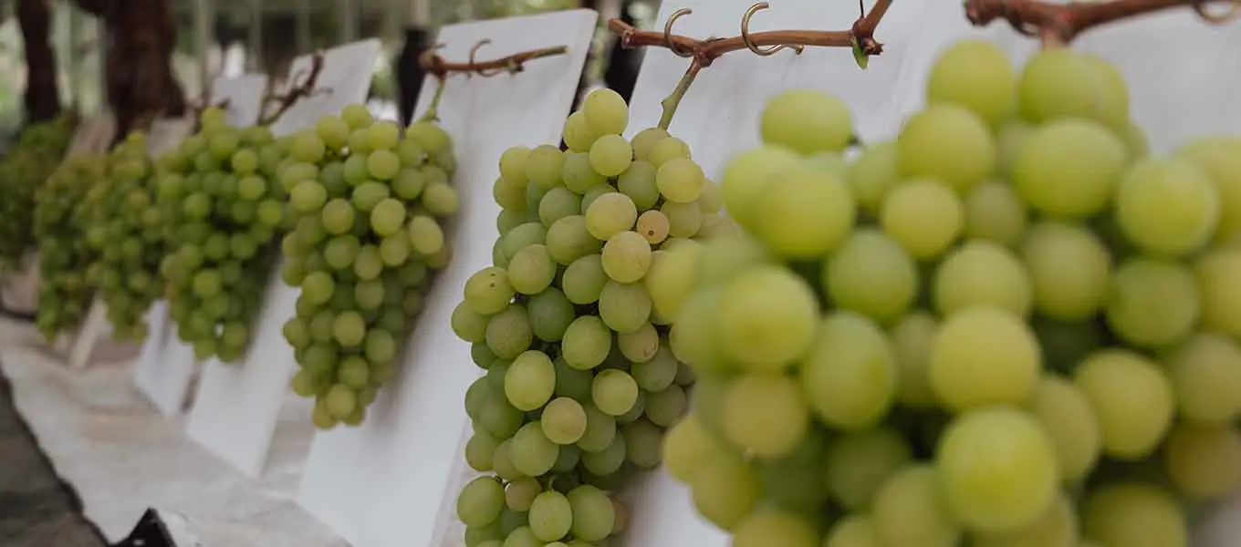 However, following a particularly good growing year, Ian was delighted to send his (RHS prize-winning!) ‘Muscat of Alexander’ grapes to a local Derbyshire wine producer to be made into a high-quality dessert wine to be served in the hotels in the spring. Around 350kg of grapes produced in excess of 250 bottles of wine, and there are still a few bunches remaining on the vine to be enjoyed as table grapes over the coming months.