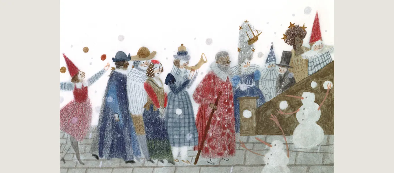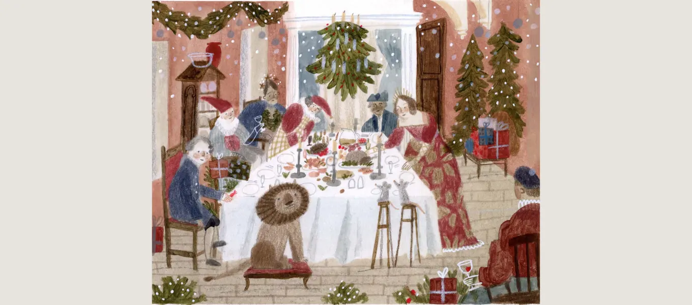 Above, the Christmas feast, illustration by Vivien Mildenberger