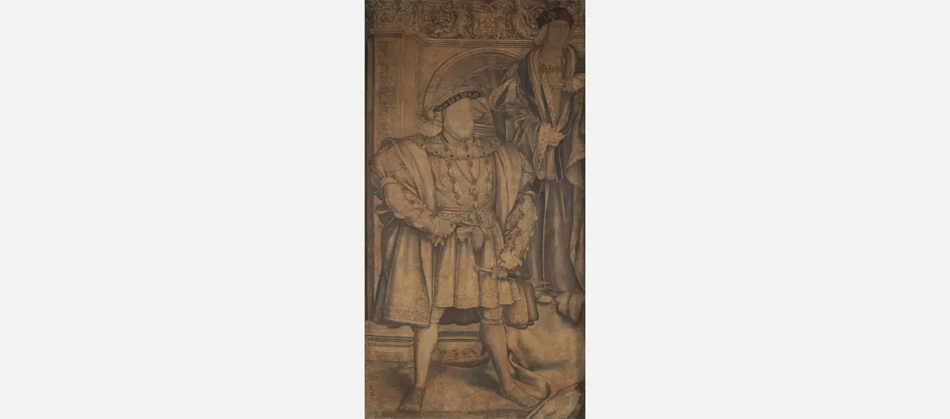 The depictions of Henry VII and VIII are the first known full length, life size depictions of monarchs in Britain. Karel van Mander, writing in the early 17th century commented that as Henry, “stood there, majestic in his splendour, [he] was so life-like that the spectator felt abashed, annihilated in his presence”. The cartoon and the wall painting were meant to convey a sense of majesty and communicate to the viewer the strength and command of the monarch.