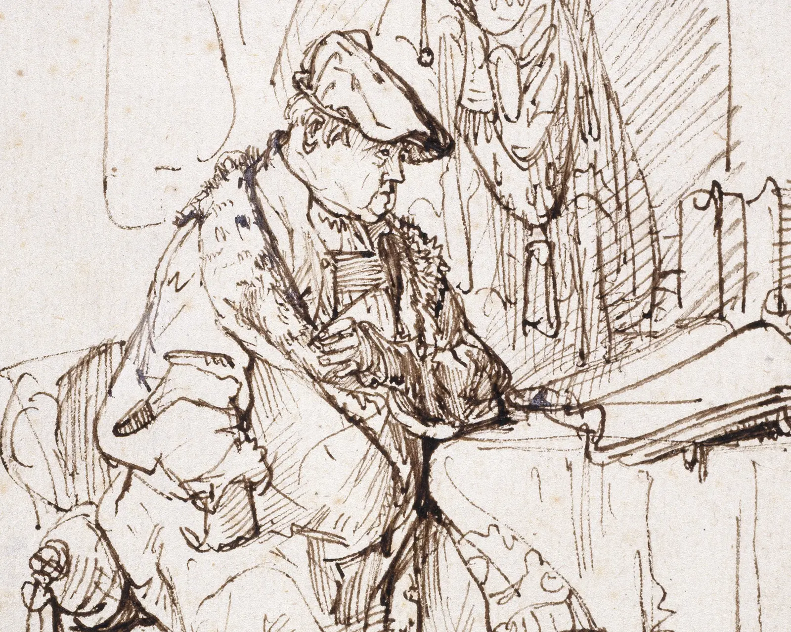 Image: Rembrandt, Willem Ruyter as an Inn-Keeper c.1638-39, pen and brown ink with brown wash. Credit Rijksmuseum, Amsterdam, The Netherlands/Bridgeman Images.
