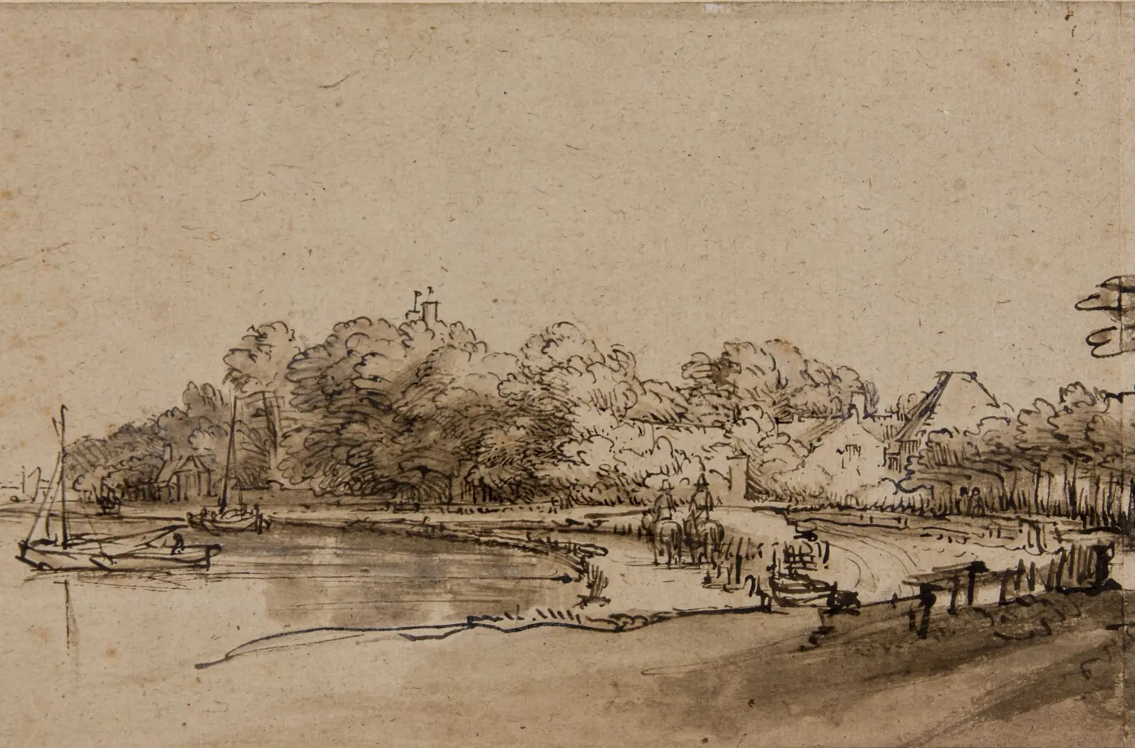 Images: Rembrandt van Rijn drawings: Bend in the Amstel near Kostverloren House; View of Sloten; A thatched cottage by a large tree, a figure seated outside