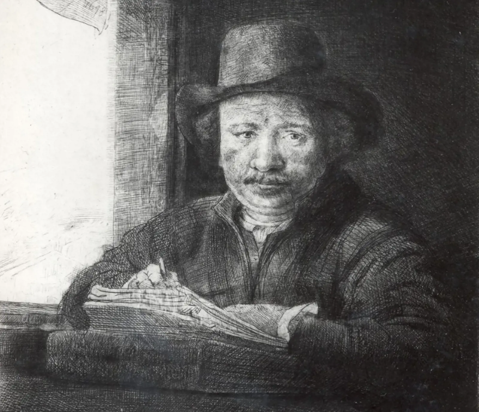 Image: Rembrandt van Rijn, Self Portrait drawing at a window