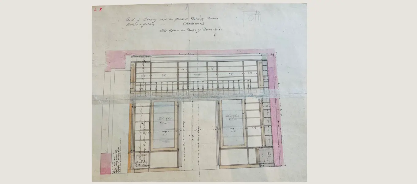 Wyatville’s plans are a remarkable asset to the Devonshire Collection. They show not only the technical drawings of the planned reconstruction, but the materials intended to be used, where the new fixtures were to be made, and where other elements of the house would be brought in to be reused.
